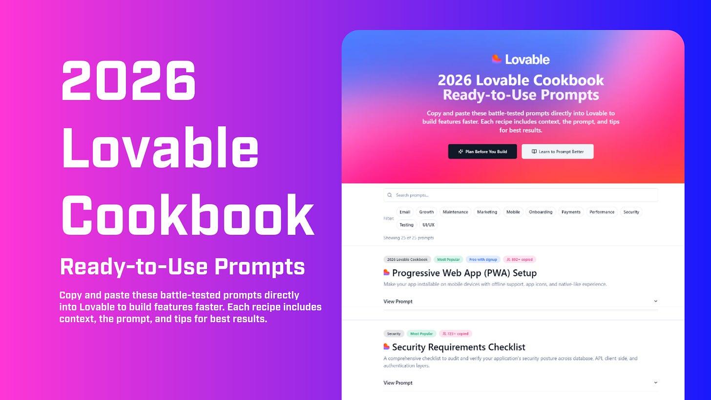The Lovable Cookbook: This invaluable resource is packed with battle-tested prompts for a wide array of functions, covering everything from robust security implementations and effective marketing strategies to seamless payment integrations. It acts as a comprehensive library for common development challenges.